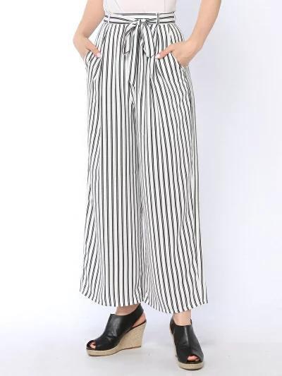 - rienda リエンダ リボンタックフレアJ/Wパンツ ホワイト