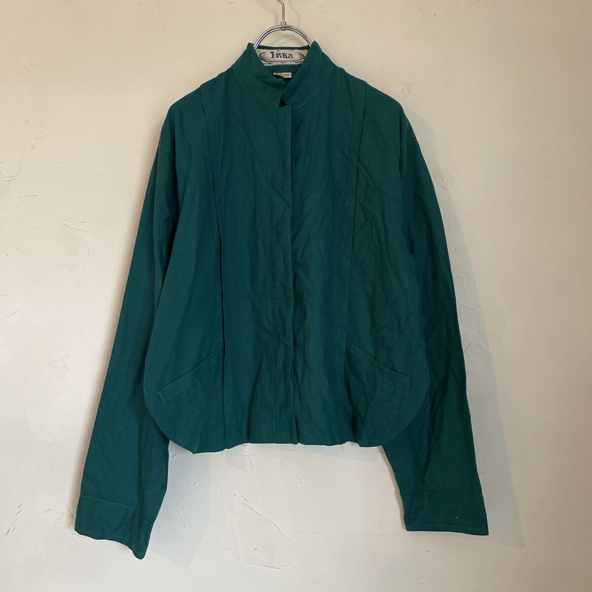 - ビンテージ シルク100 シャツジャケット 5 ヴィンテージ レディース グリーン 緑色 ユーロ ヨーロッパ古着 長袖 バンドカラー ブラウス