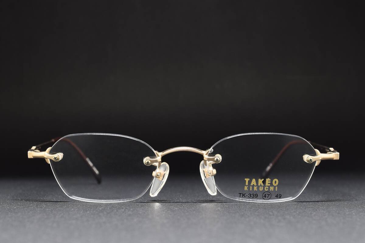 > デッドストック TAKEO KIKUCHI TK-339 47-20 リムレス オーバル メガネ サングラス フレーム ゴールド ヴィンテージ ふちなし