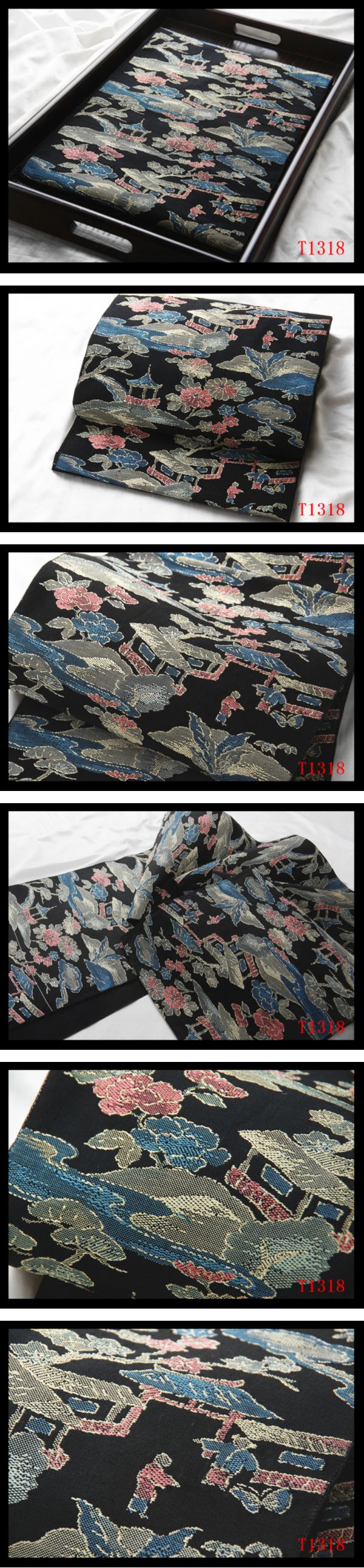 > 蔵【T1318】厳選美品 黒色地 気品豊かに 正絹高級美術開き名古屋帯 ◇検簪着物袋帯和装小物帯締め