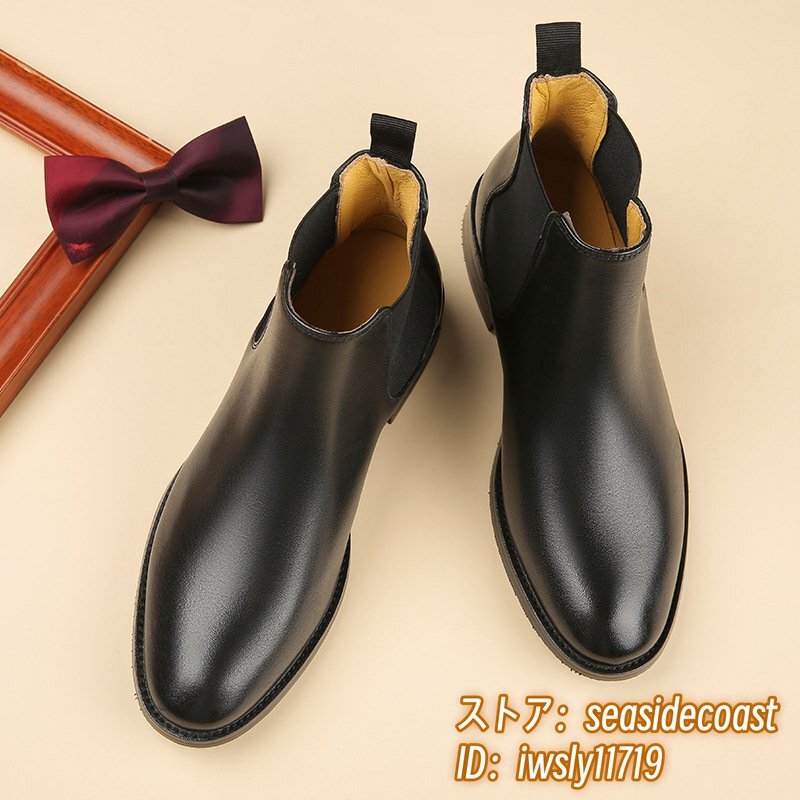 > 極美品★牛革ビジネスシューズ メンズ 本革レザーシューズ マーティンブーツ ハイカット ショートブーツ 紳士靴革靴 通勤 ブラック 27.0cm