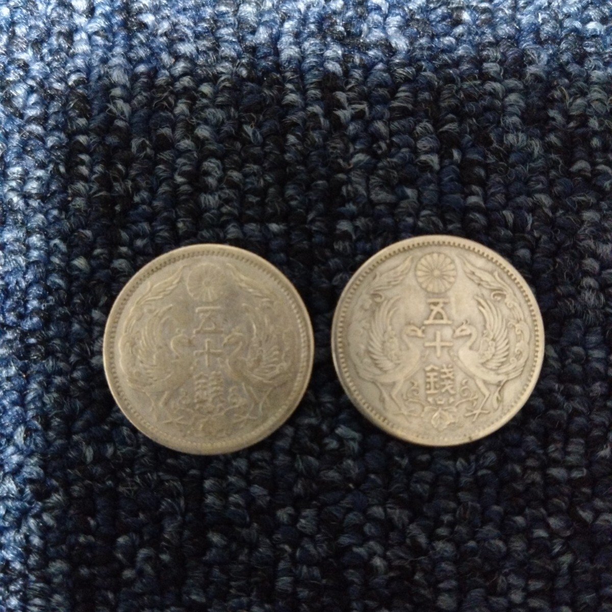 - 古銭 五十銭銀貨2枚 大正12年 貨幣 銀貨 硬貨 小型
