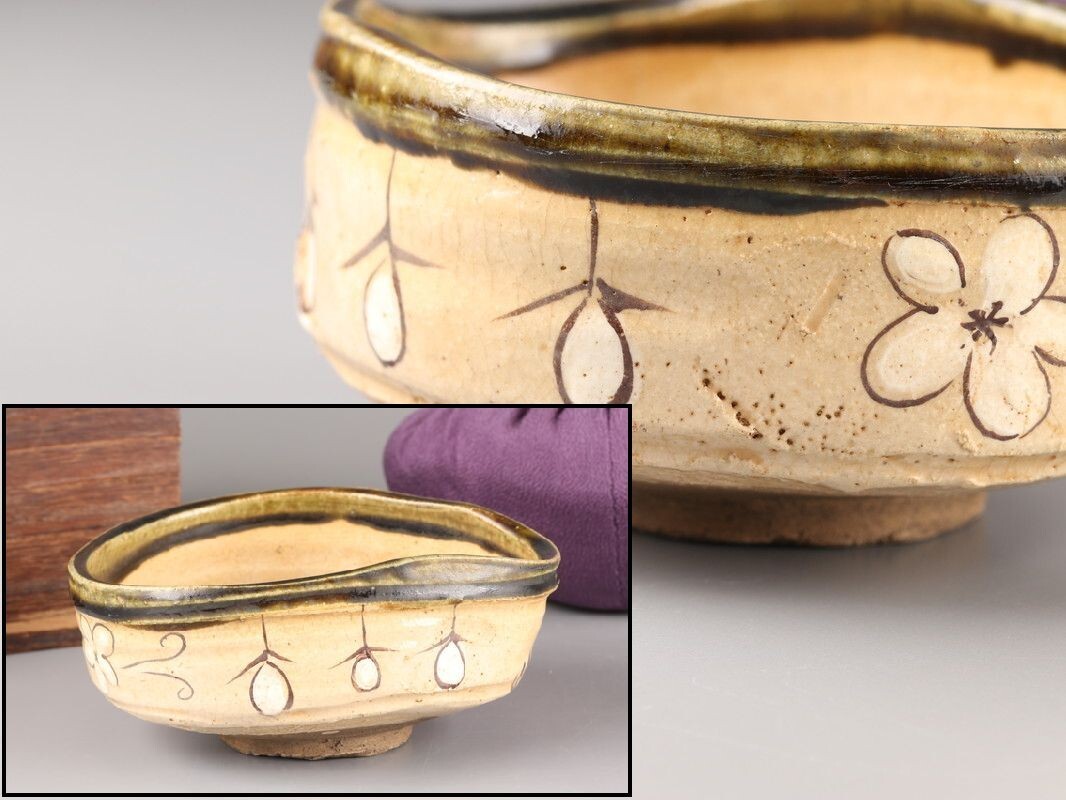 - 古美術 茶道具 古織部 織部焼 沓茶碗 古作 時代物 初だし品 D4713