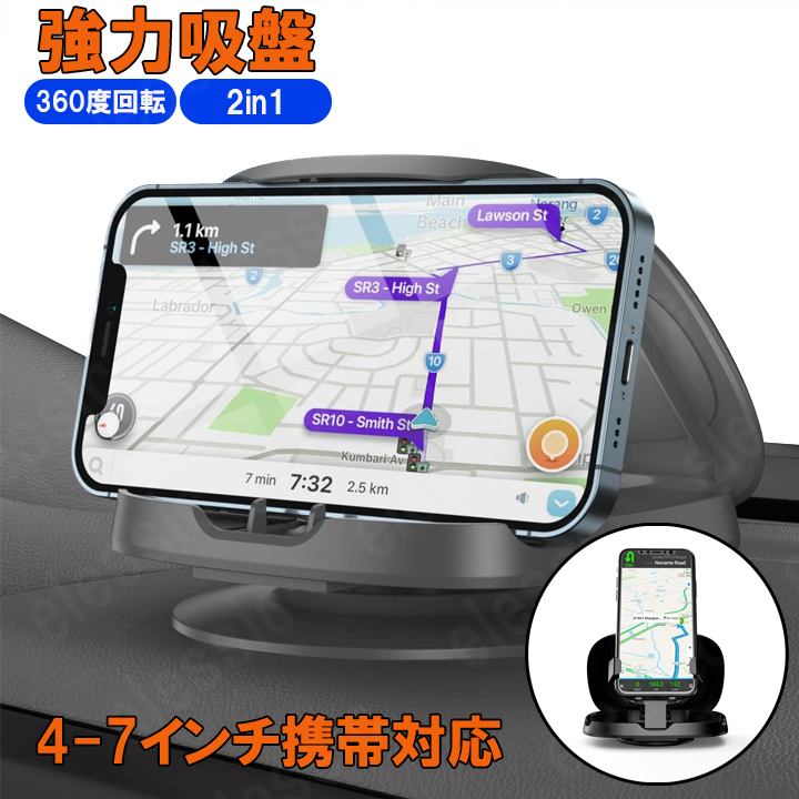 - スマホホルダー モバイルホルダー 車載 車 スタンド 携帯 iPhone Android スマホ カー用品 充電 ダッシュボード 360度回転 スマホ固定