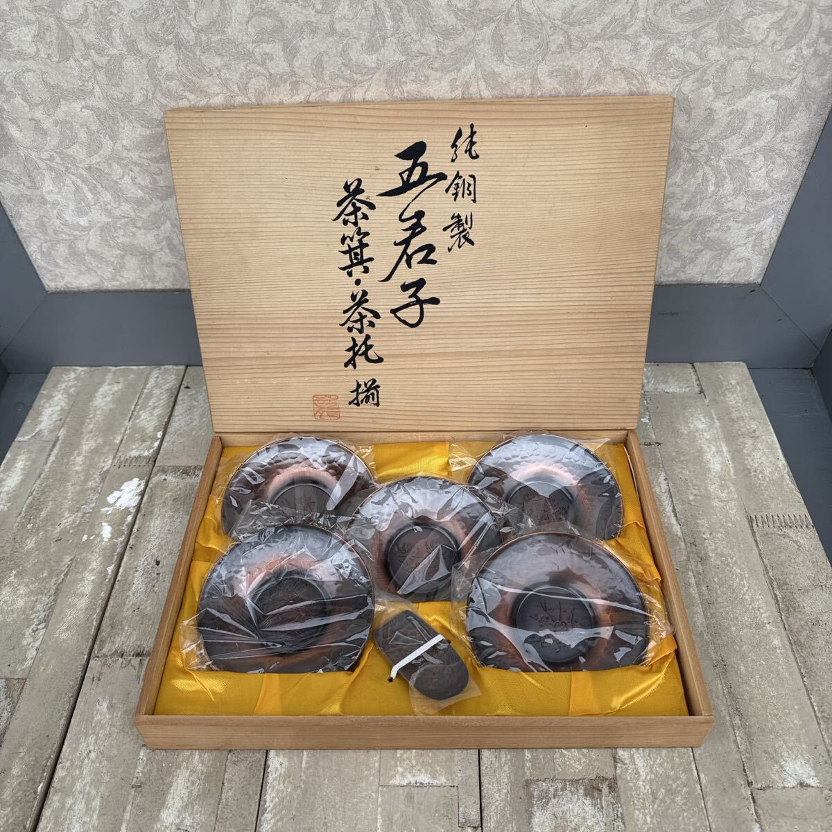 - 純銅製 五君子 茶箕茶托 7枚セット 未使用