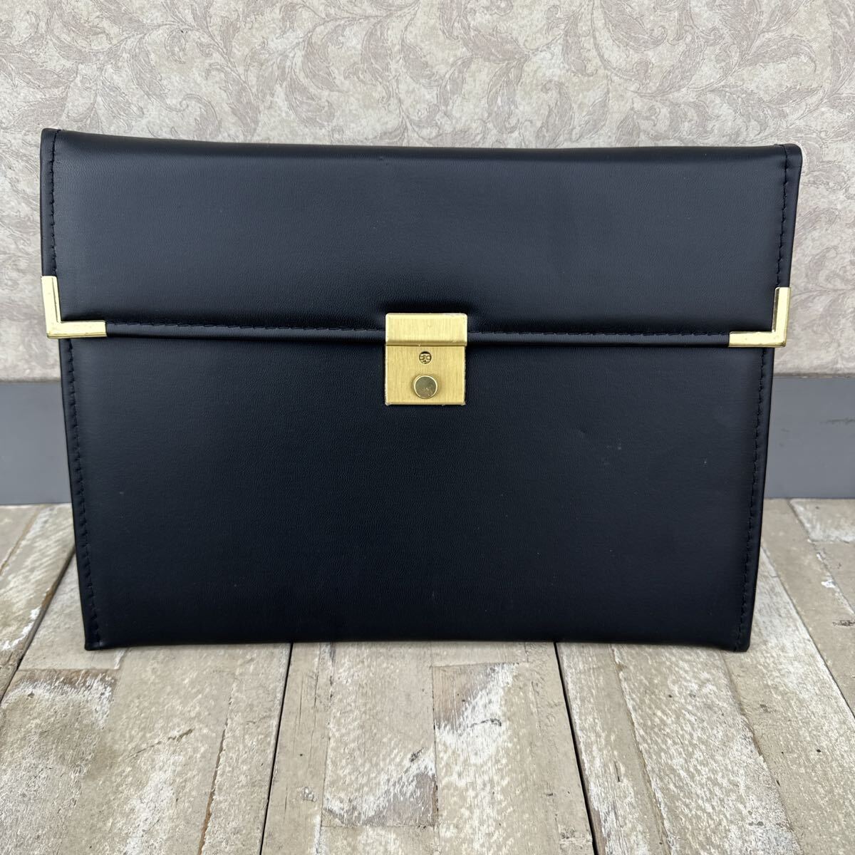 - 黒いレザー クラッチメモバッグ 電卓鍵付き レトロ