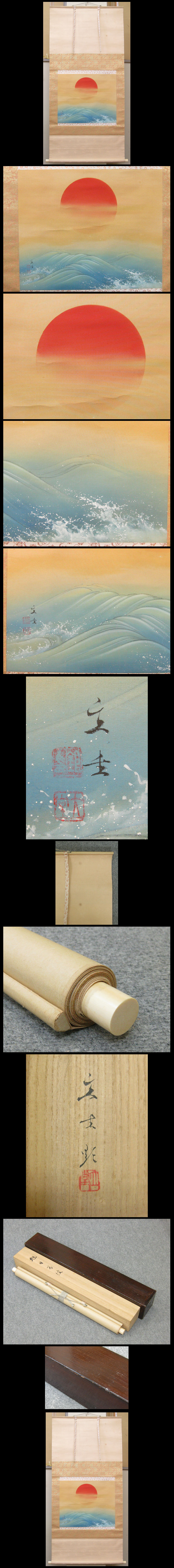 - 【心庵】掛軸 小林立堂 絹本「旭日青波」日の出図/肉筆 共箱 二重箱 真作 B345