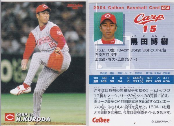 > ●2004カルビー 【黒田 博樹】 BASEBALL CARD No.064:広島 R