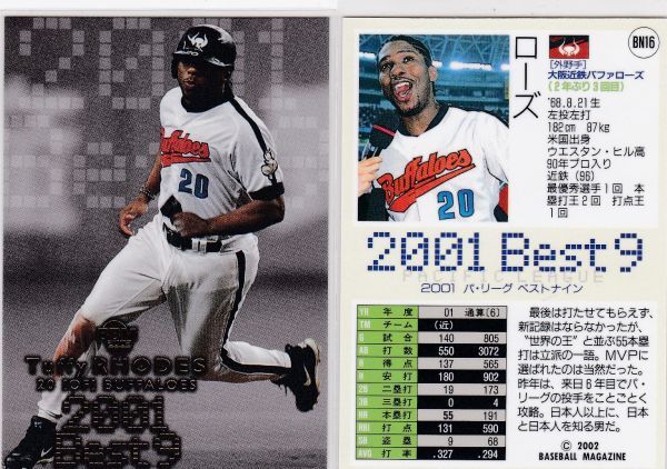 > ●2002BBM 【T.ローズ】 インサート:01ベストナイン BNNo.16:近鉄 R