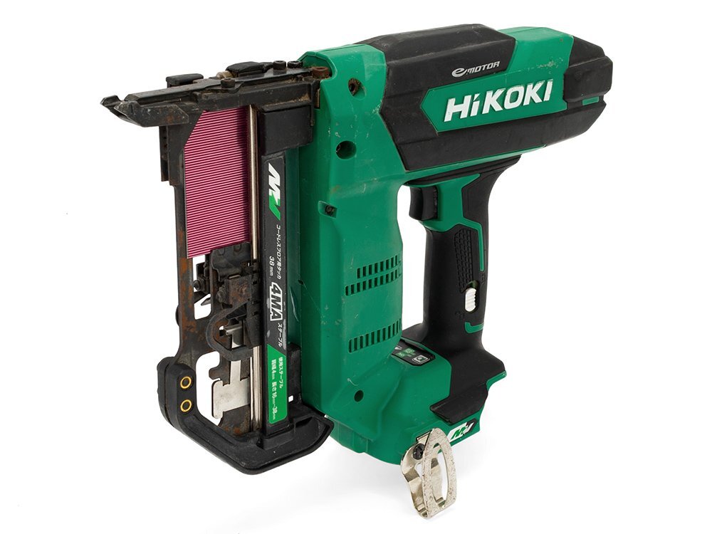 コンプレッサ・ホース不要でホースによる引っ掛かりやフロア材へのキズや汚れの心配が必要ない、コードレスの取り回しやすさとエア工具の使用感を実現したハイコーキの電動フロアタッカ「N3604DM」本体のみの出品です。反動低減機構により、本体の浮き上がりを抑え、さらに強力なスプリングを採用することで様々な木材にもしっかり打てるパワフルな打込み力を実現しました。エア式と比べて動作音も小さく上階での作業やマンション内装リフォームに最適。現場や車内もすっきり作業できます。