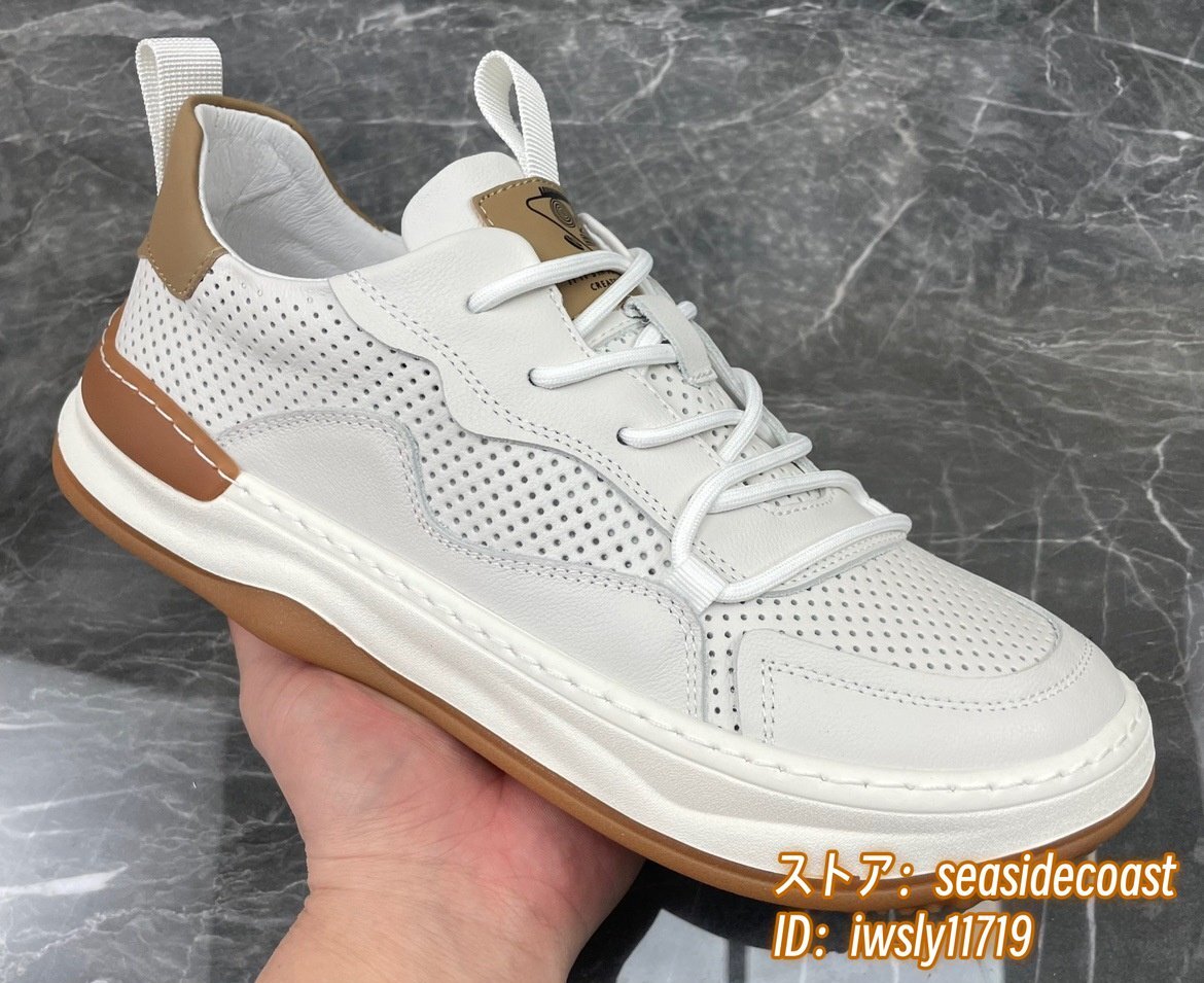 > 新品 スニーカー 本革 レザーシューズ メンズ 高級品 ウォーキングシューズ ローファー スリッポン トレンド 柔らか 牛革 通気性 白 27.0cm