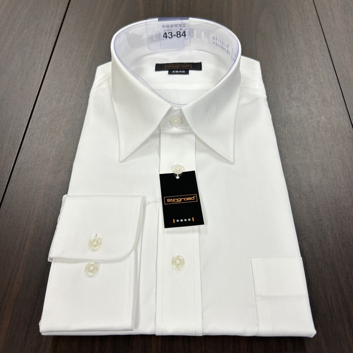 - 綿高率白無地形態安定ドレスシャツ43-84レギュラーカラー