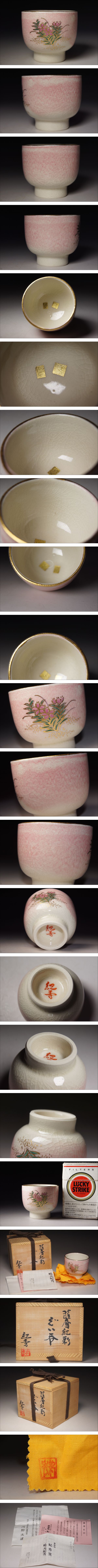 > 薩摩焼名工 畦元紀秀 作 薩摩紅彩 草花文 ぐい呑 共箱・共布・栞付 色絵 金彩 酒器 酒杯 酒盃 鹿児島県生 検:日本酒 酒肴