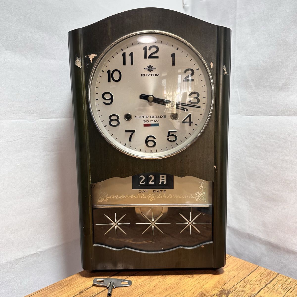 - 【希少】 RHYTHM 振り子時計 ゼンマイ式 昭和レトロ 30DAY 壁掛け (94)
