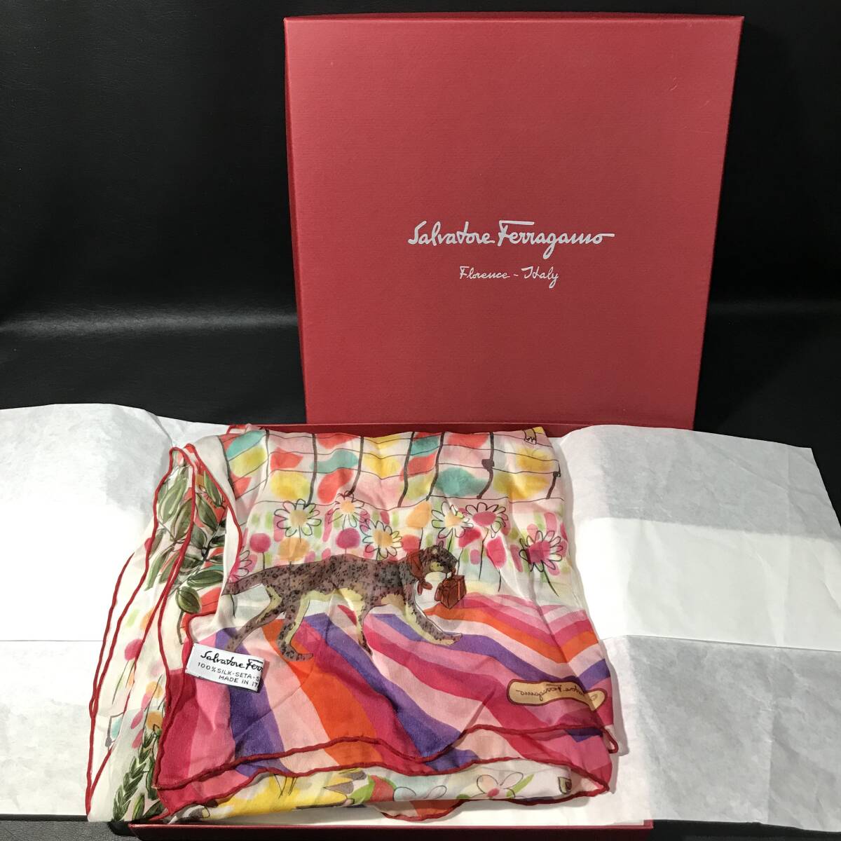 - TG39 Salvatore Feragamo フェラガモ スカーフ シルク100% 170×40 箱付