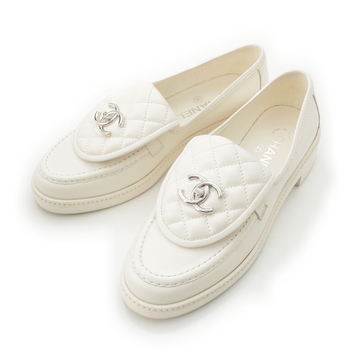 - シャネル レザー マトラッセ ココマーク ターンロック ローファー G36646 ホワイト 38 1/2【中古】