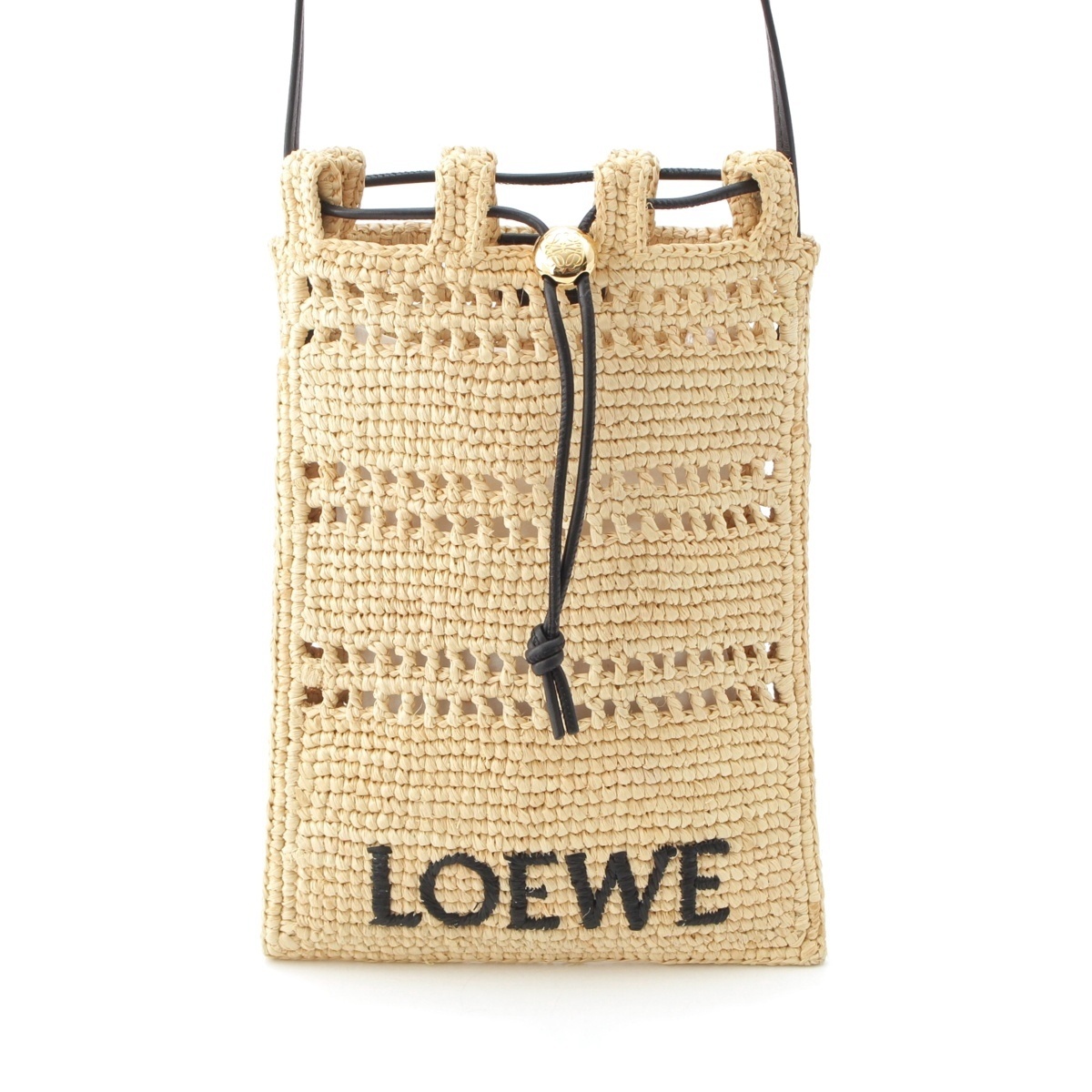 > ロエベ ラフィア ドローストリング ポケット ショルダーバッグ C756PHPX01 ナチュラル【中古】