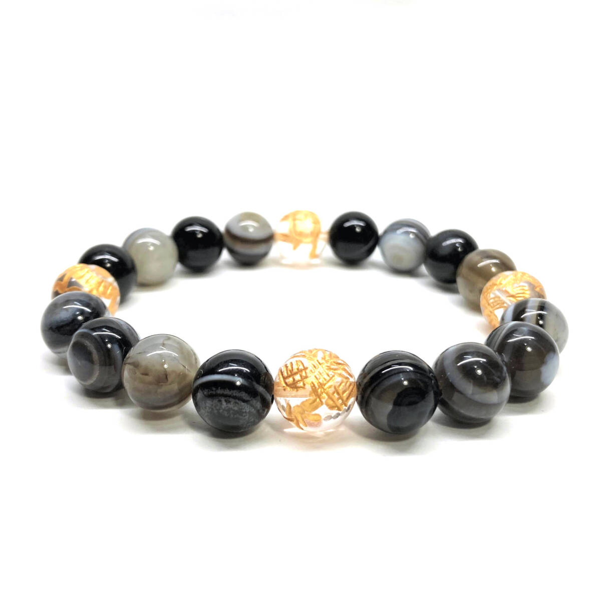 - 10mm 四神獣金彫水晶×チベットアゲート(天眼石) パワーストーン ブレスレット天然石 運気上昇 開運 青龍 白虎 玄武 朱雀 ☆