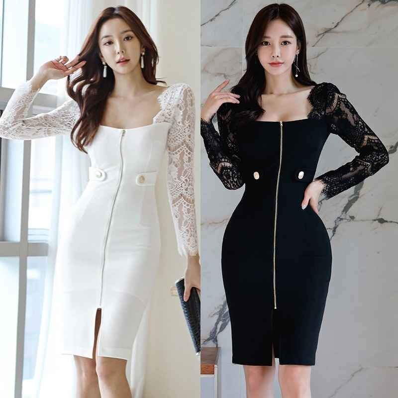 - ミニワンピ タイトワンピース ドレス 長袖 きれいめドレス シンプル XL ホワイト