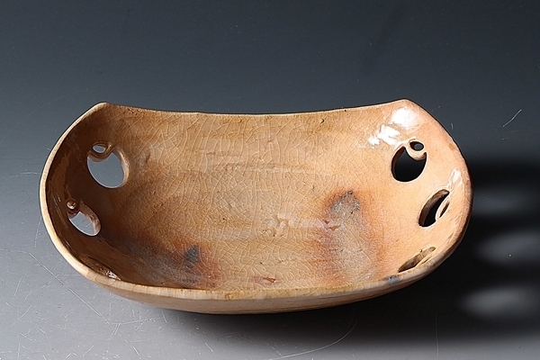 - SP9046 時代懐石道具 楽焼 白楽 船形 つぼつぼ 向付 懐石 割烹食器 舟形
