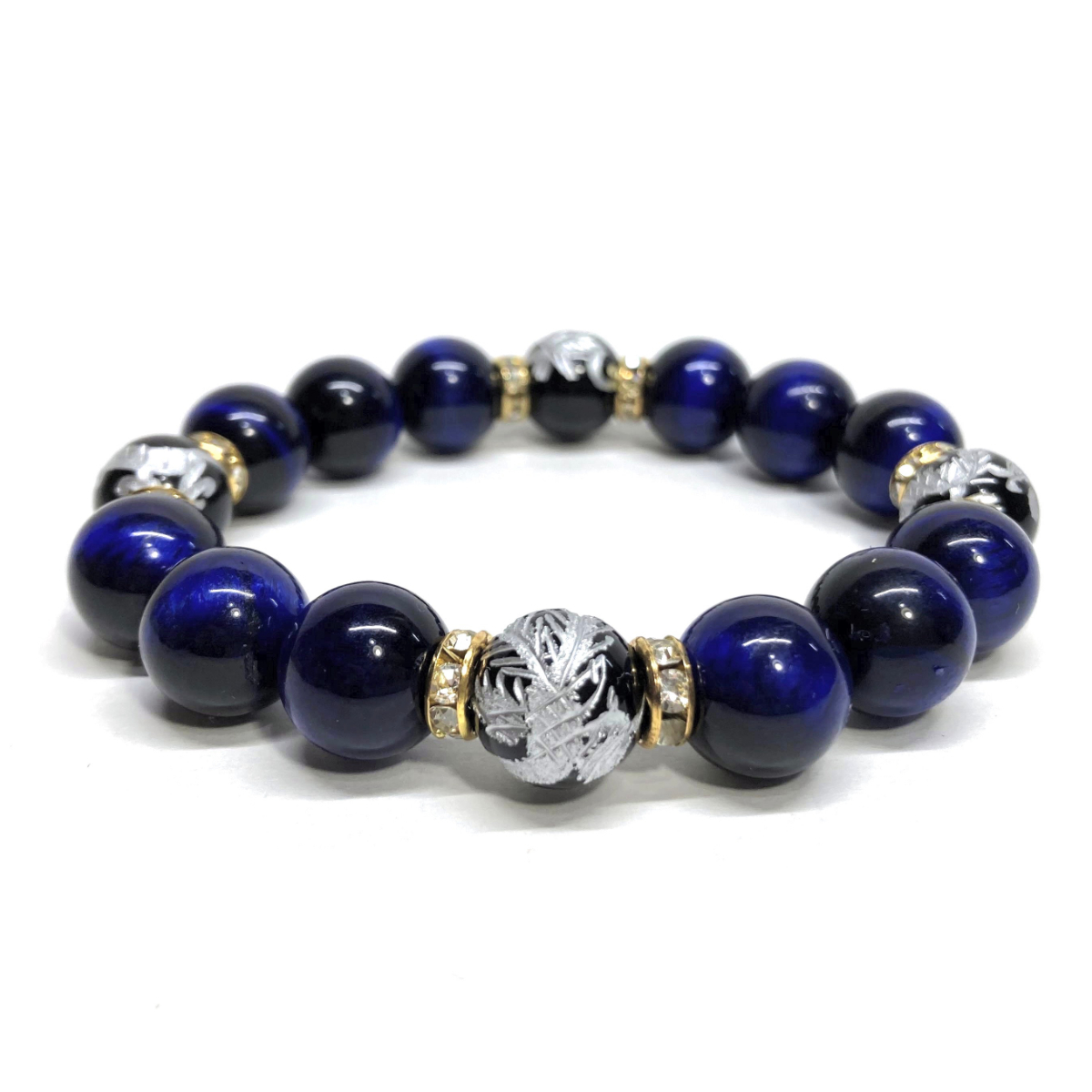 > 四神獣銀彫オニキス×ブルータイガーアイ 12mm パワーストーン ブレスレット 天然石 青龍 白虎 玄武 朱雀 運気上昇 開運 金運 お守りG
