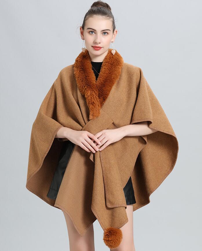 - M1021 ポンチョレディース● 着心地抜群 20代30代40代 ● ニット素材 コート 防寒 カーキ
