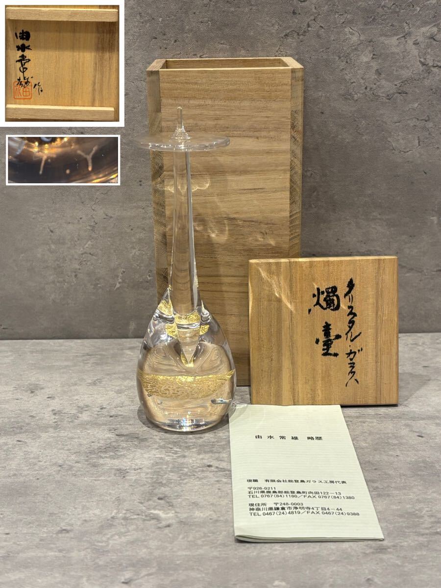 > ◇トレモ◇由水常雄 【ゆうすいつねお】作 クリスタルガラス 金箔 キャンドル 燿壺 ガラス工芸品 共箱・略歴付 作家サイン・刻印入り ②