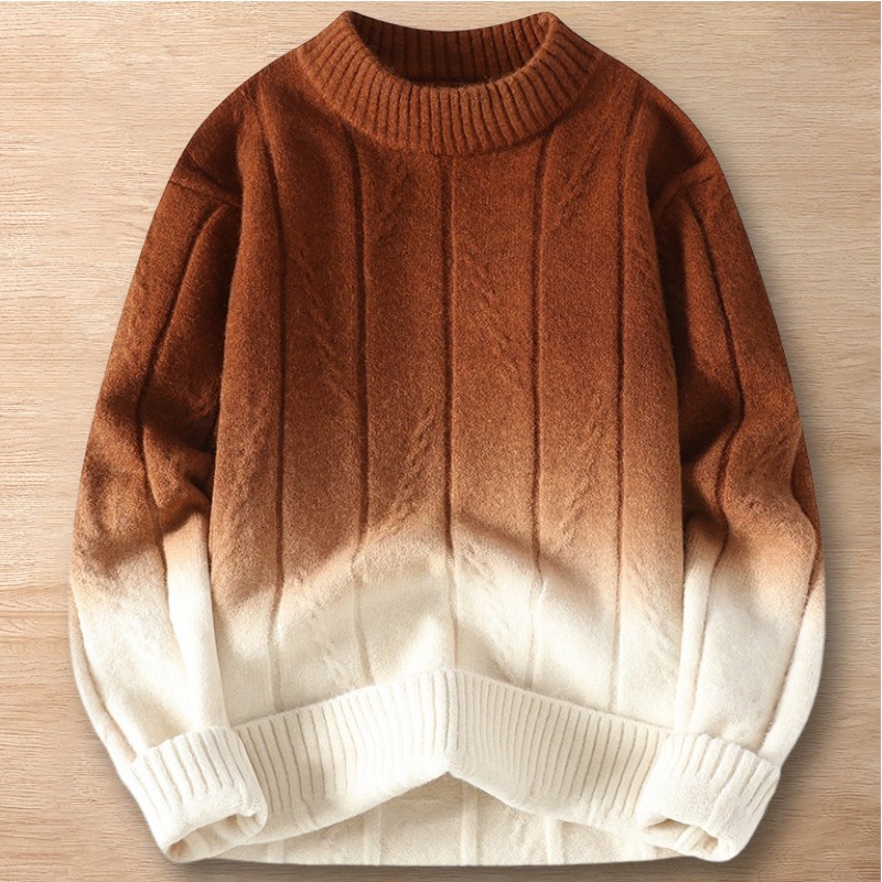 > Y206-2XL キャラメル 新品DCKMANY ウール混 ニット セーター グラデーションニット クルーネック ふんわり 保暖 防寒 秋冬 メンズ トップス