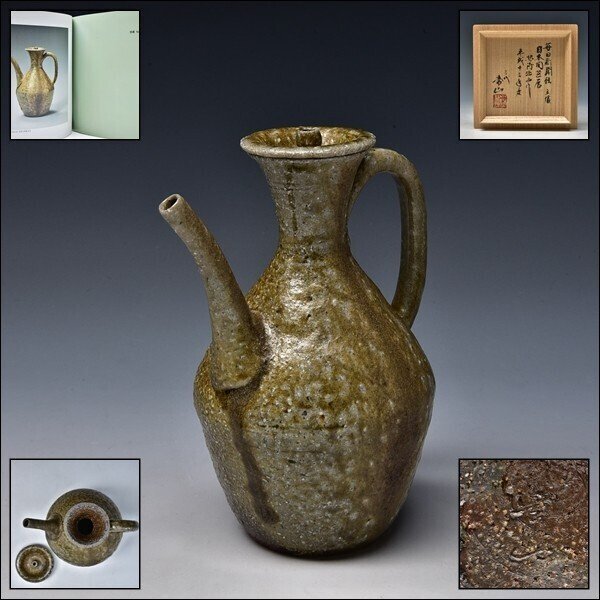 > U08884 人間国宝 三代 山田常山 常滑 自然釉 水注 2001 日本陶芸展 招待出品作 図録掲載作品 共箱 /G301