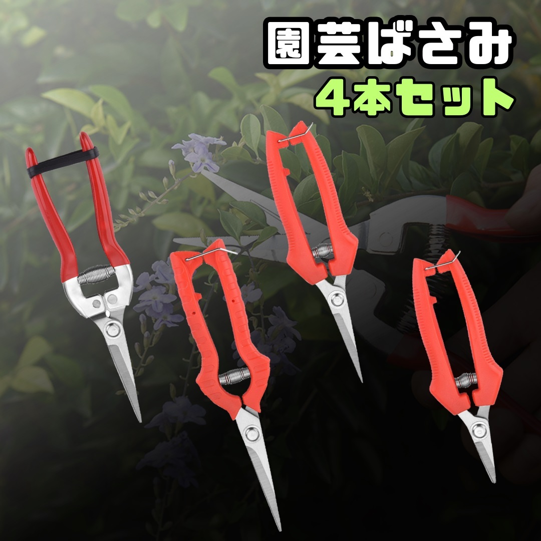 > 【4点セット】 園芸 ばさみ ステンレス 剪定 鋏 ハンディ 枝 切り 庭 木 ガーデニング 果物 野菜 生け花 盆栽 フラワーアレンジメント
