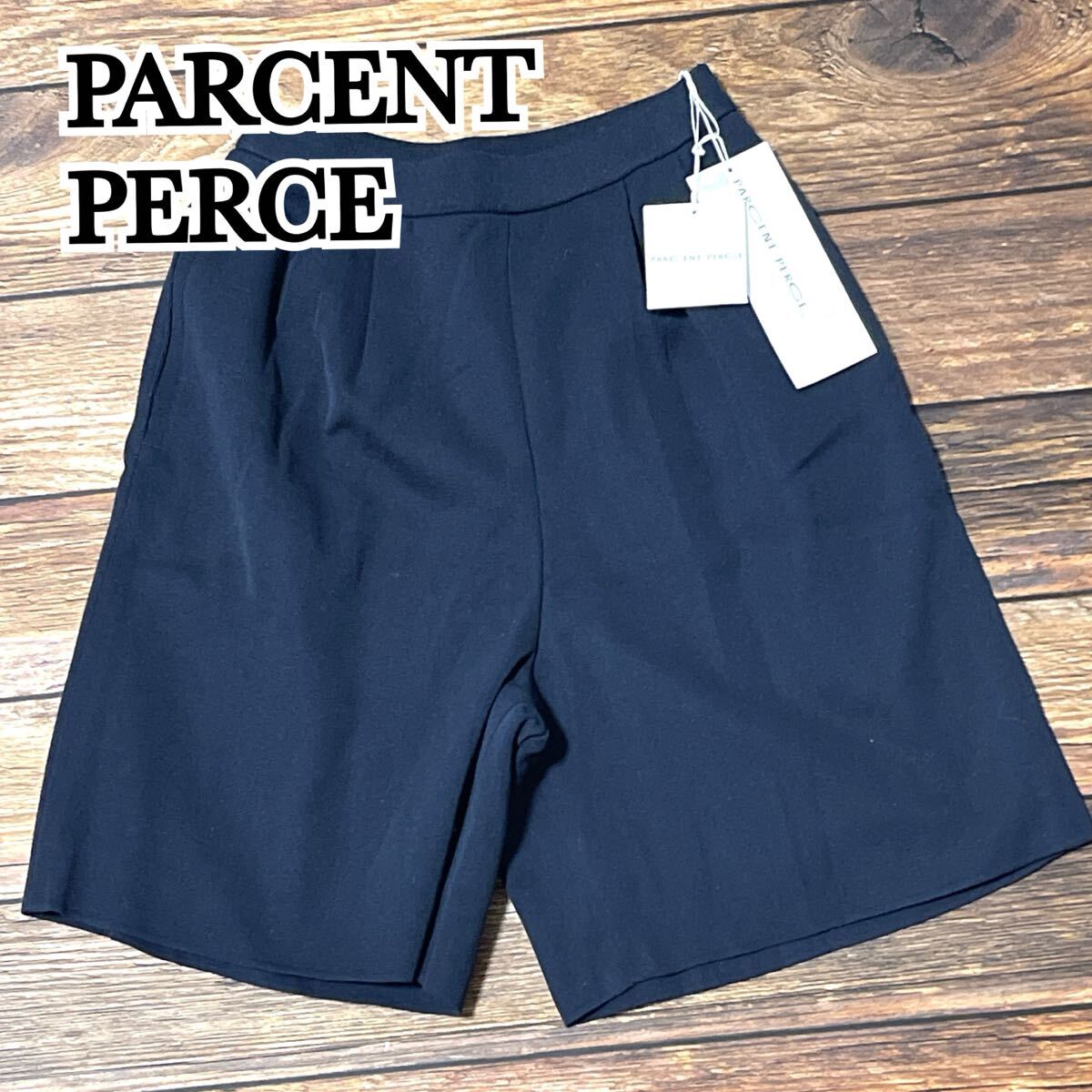 - 新品 未使用 PARCENT PERCE パーセントパージュ ハーフパンツ ひざ丈 ウエストゴム ポケット付き レディース ボトムス コットン ネイビー M