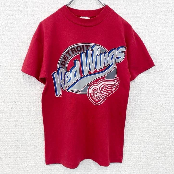 > 古着 used 半袖プリントTシャツ レッドウィングス アイスホッケー 赤 レッド シングルステッチ レトロデザイン Lサイズ