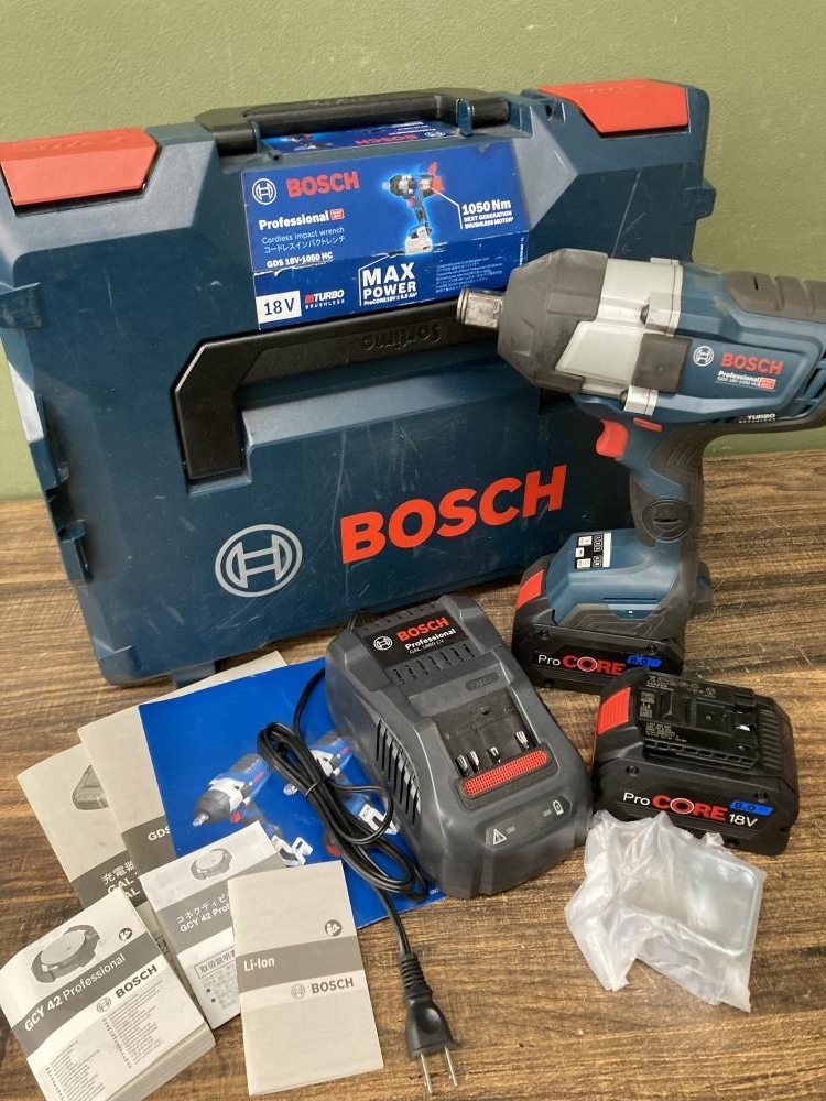 - 022●おすすめ品●BOSCH 18Vコードレスインパクトレンチ GDS18V-1050HC 18V8.0Ahバッテリ×2、充電器付属