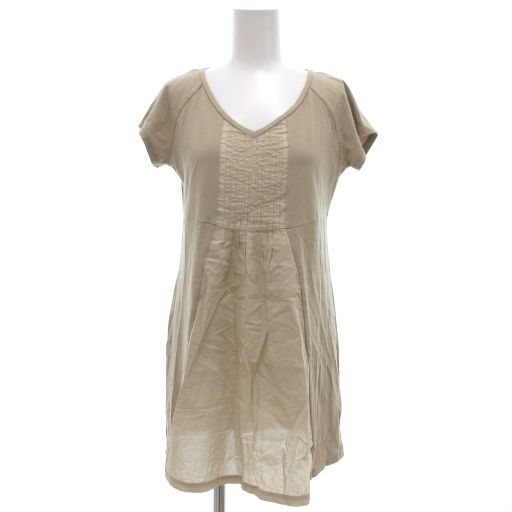 - マックスマーラ MAX MARA チュニック カットソー Vネック 半袖 S ベージュ ピンタック /UO ■GY43 レディース