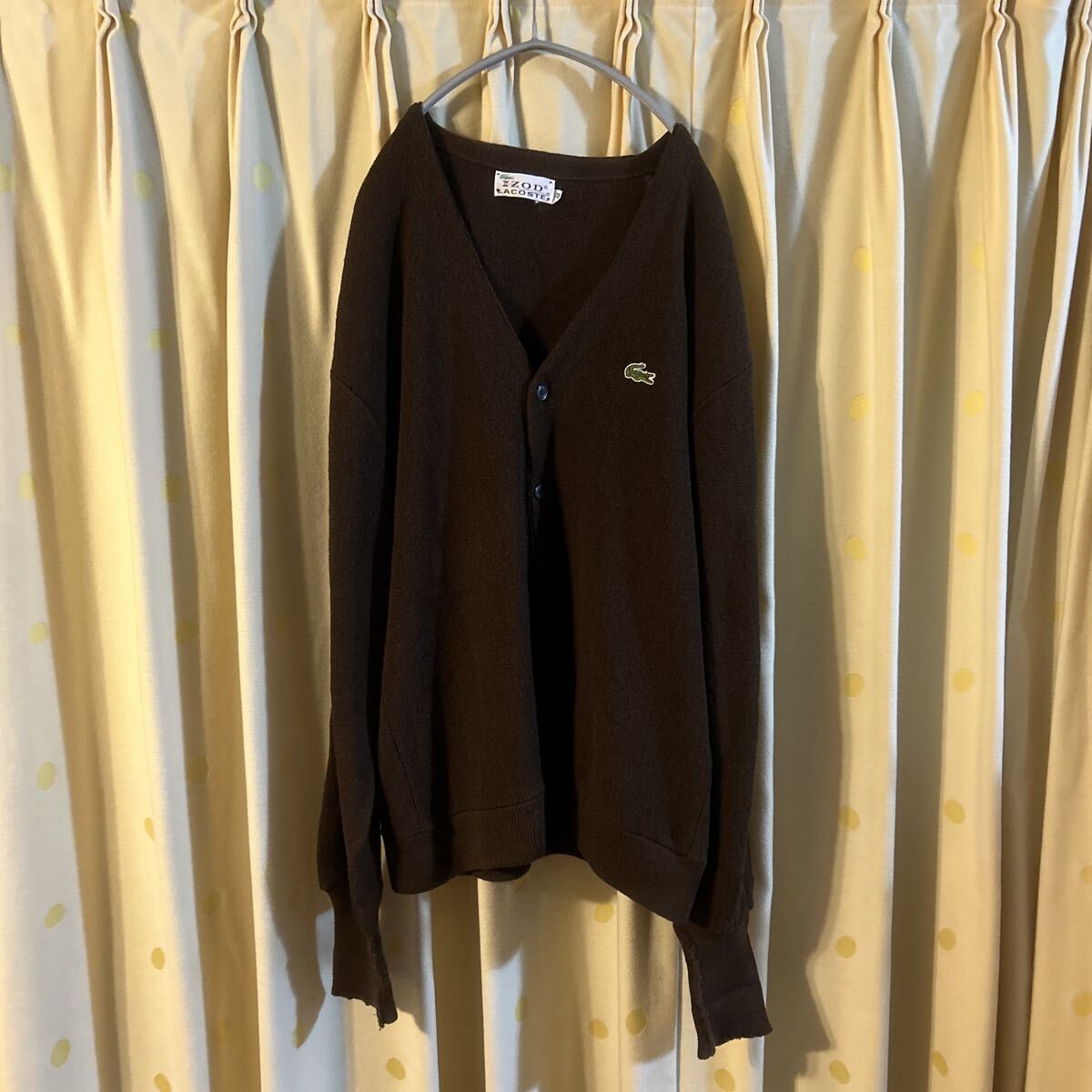 - 70S 糸巻きタグ IZOD LACOSTE アクリルカーディガン サイズXL コゲ茶 状態良し