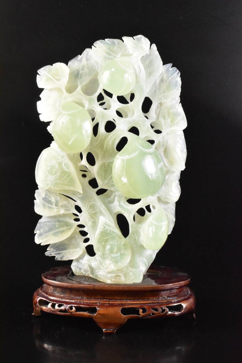 - 【雲】某資産家買取品 石製 玉製 花彫刻 置物 台付 古美術品(縁起物オブジェ) F8089