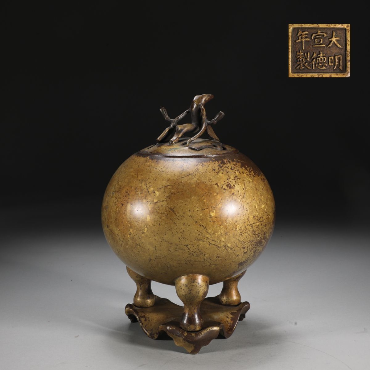 - 【永】明時代 大明宣德年製 古銅製 天球祝壽形 熏爐 極細工 古銅彫 置物擺件 古美術品 古董品 収集 古美味 旧家蔵出 中国唐物 A69