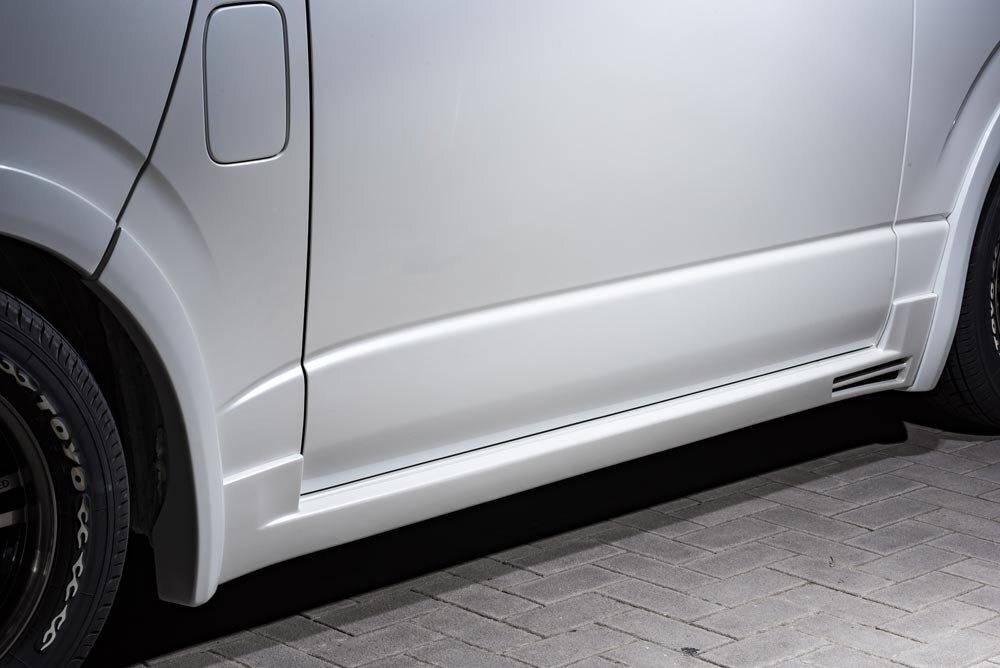 - M'z SPEED サイドステップ ホワイトパールクリスタルシャイン (070) FRP ハイエースバン 200系 H25.12~ 5ドア