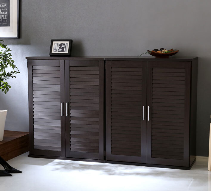 - 下駄箱2本セット ルーバーシューズボックス75cm幅 ダークブラウン
