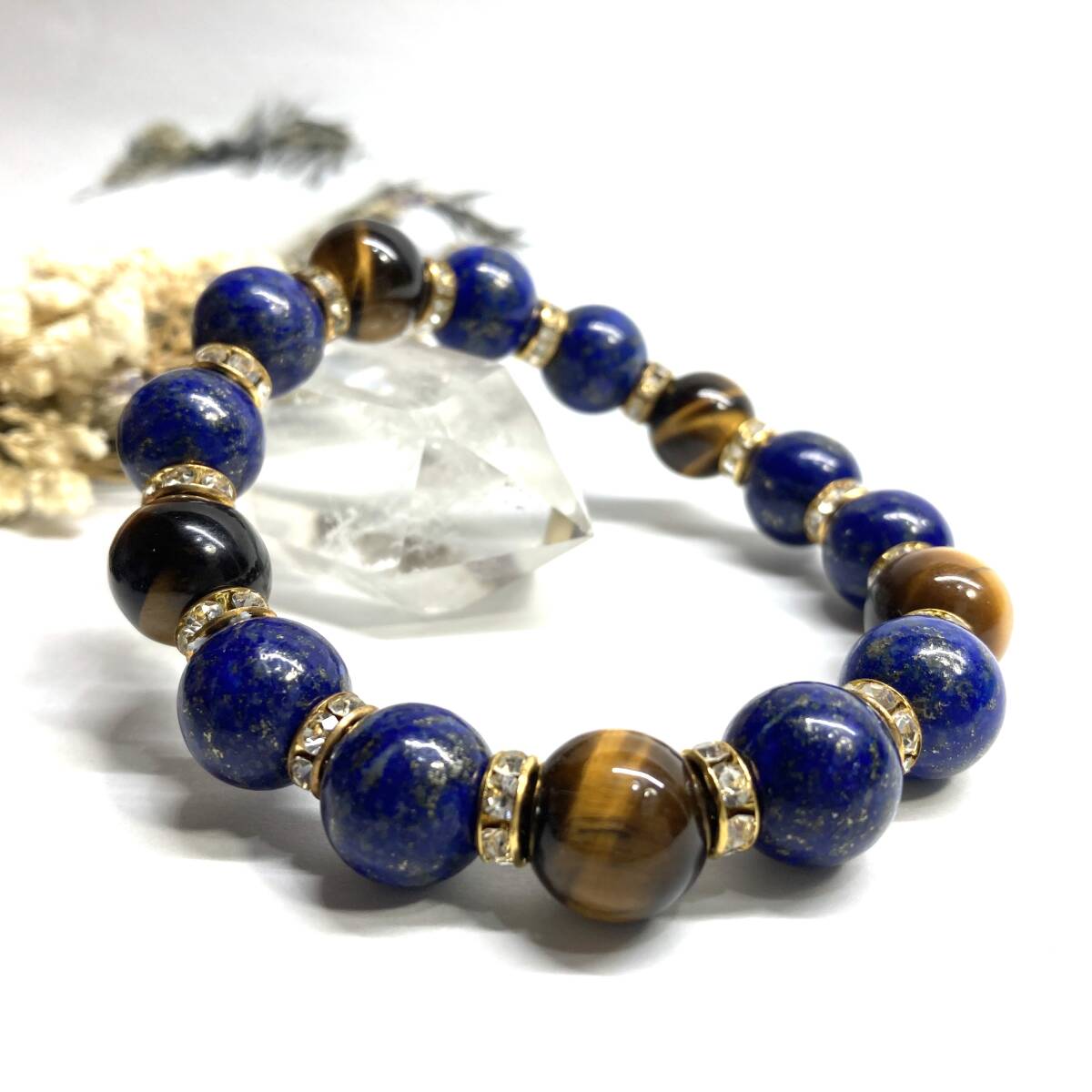 - ラピスラズリ&タイガーアイ パワーストーン ブレスレット 天然石ブレス (ゴールド) 12mm 幸運 開運 メンズ 男性♪