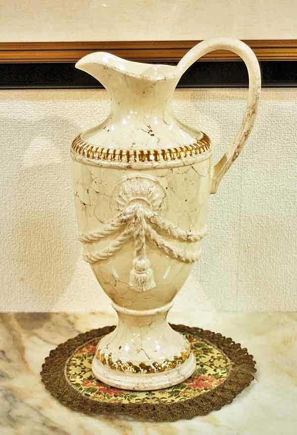 伝統的なロココ調のカラフェ型のデザインで、女性的な曲線のラインと繊細なハンドルのラインが美しい花瓶です。