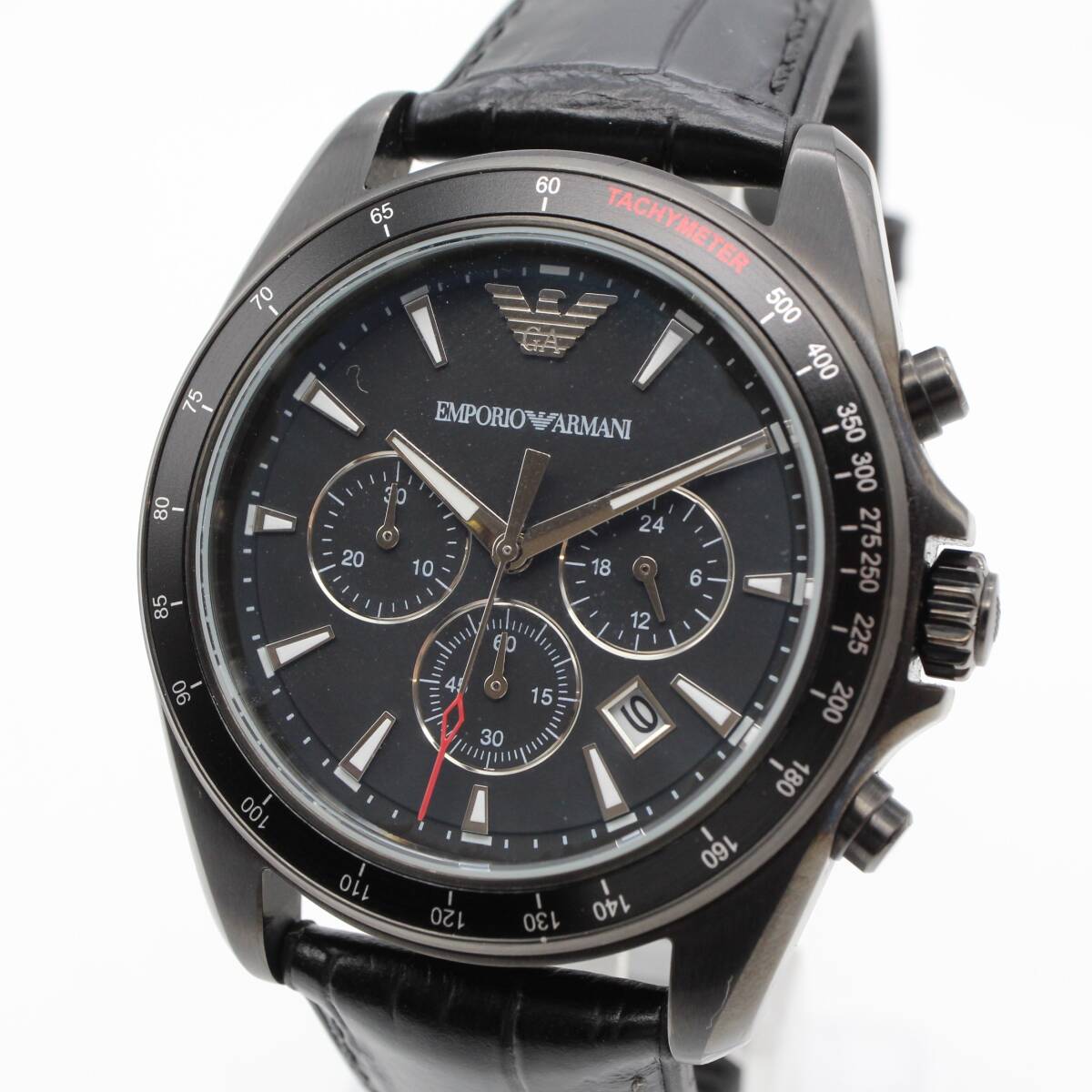 - 電池交換済み 【EMPORIO ARMANI エンポリオアルマーニ】 AR-6097 クロノグラフ デイト クォーツ/QZ メンズ 腕時計 ブラック文字盤 箱付き