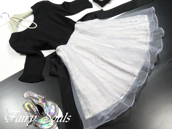 - 未使用 発表会 舞台衣装 パーティ フォ-マル 異素材レース仕様 ワンピース M 9号 (OPN2756)