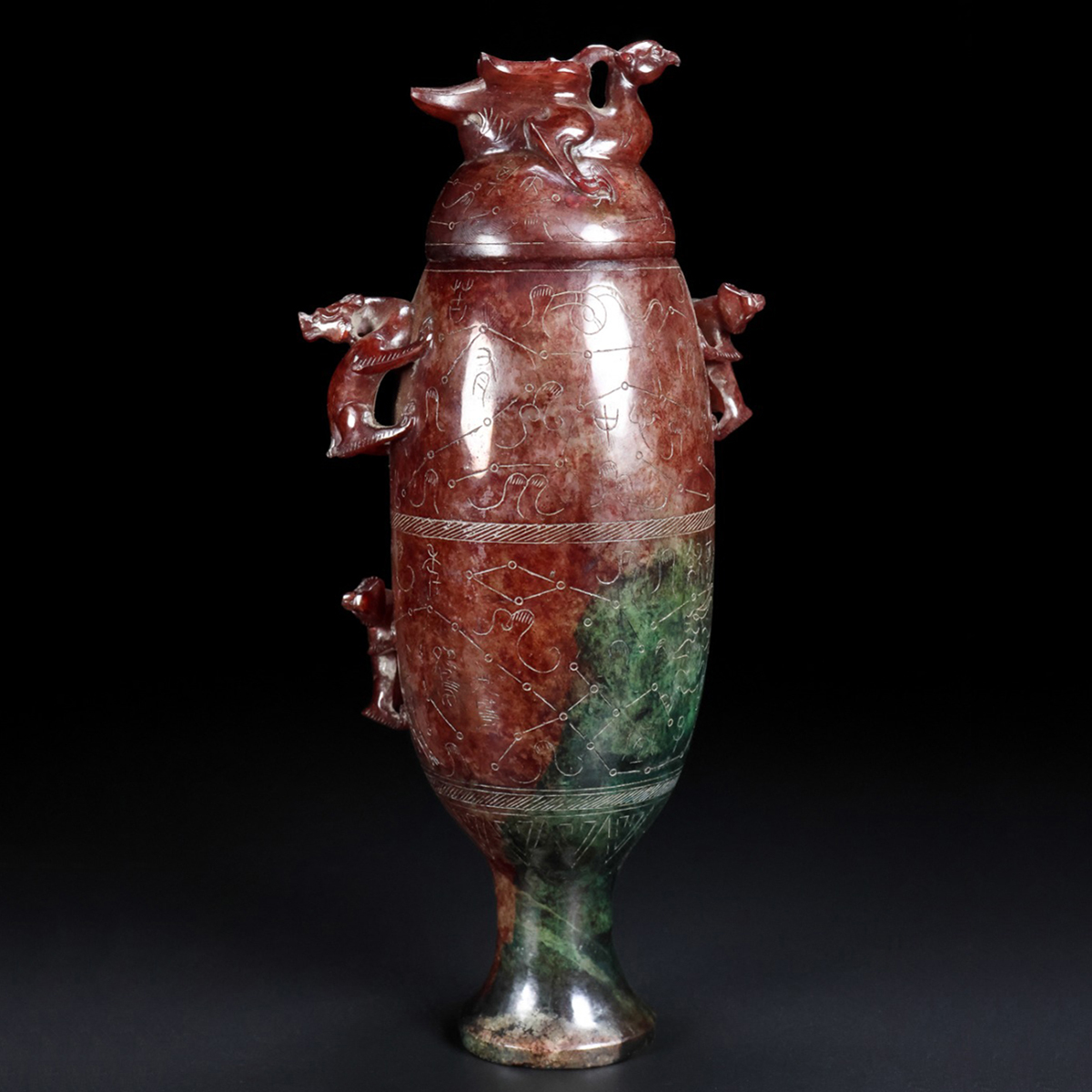 - ▽鴻▽漢時代 和田玉 高古玉 鳳鳥鈕星宿紋杯 時代物 中国古美術 骨董品