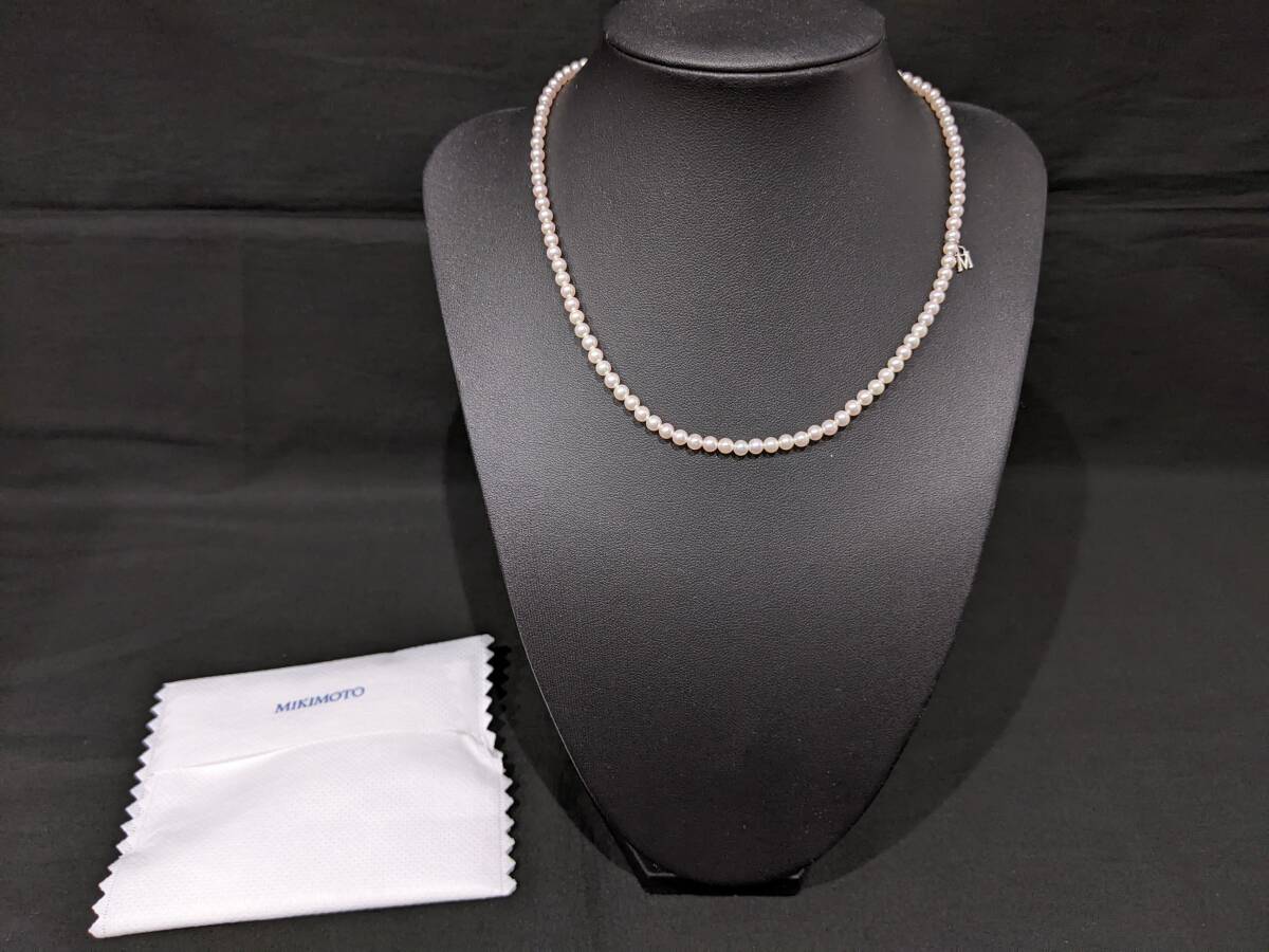 > 【69075】SIL刻印 MIKIMOTO ミキモト チャーム付き パールネックレス 3.5mm前後 ブランドアクセサリー 真珠 保存袋付