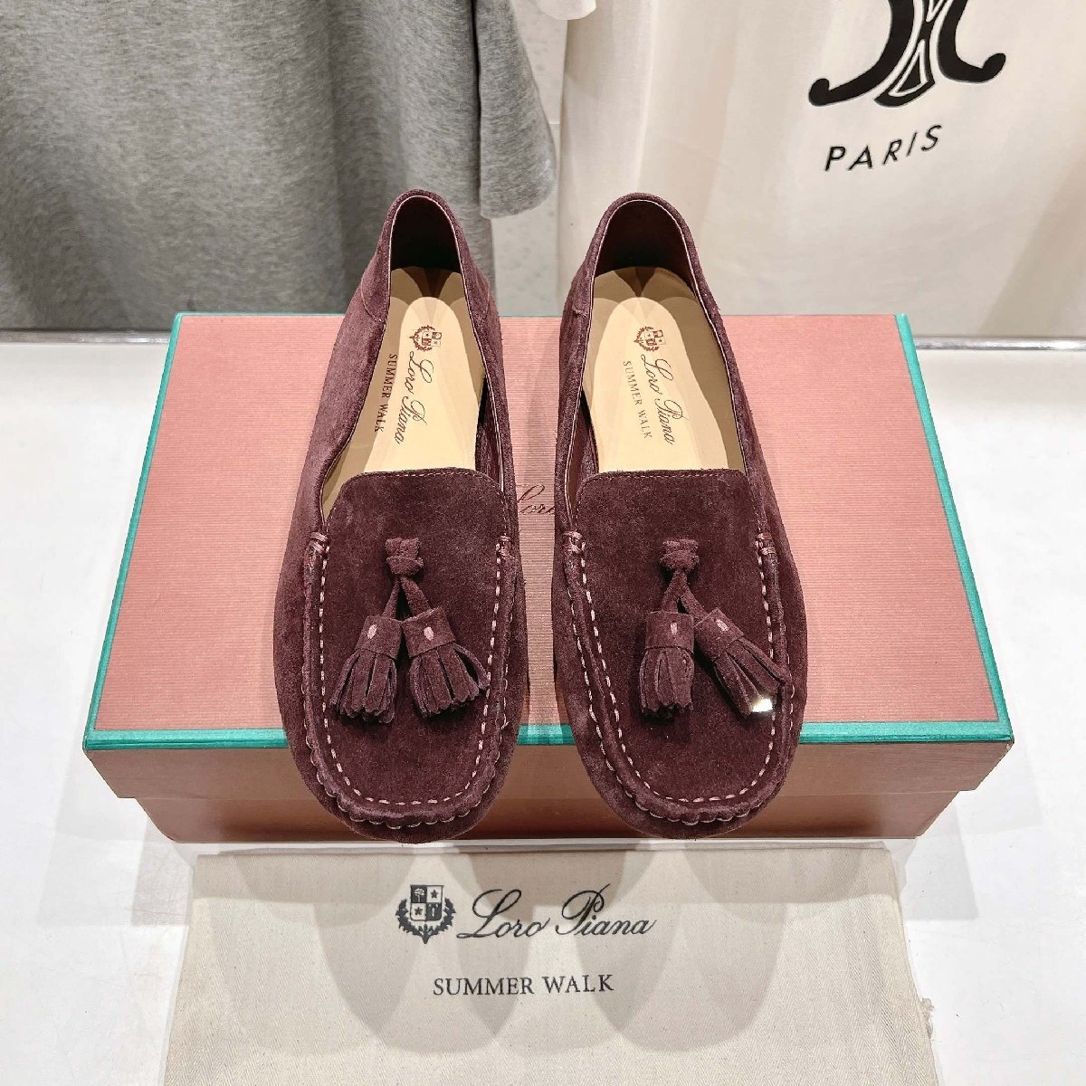 - ワイン24.5cm ★送料無料★ロロピアーナレディースサマーウォーク スエード タッセル ローファー, スエードレザーコンフォートソール付