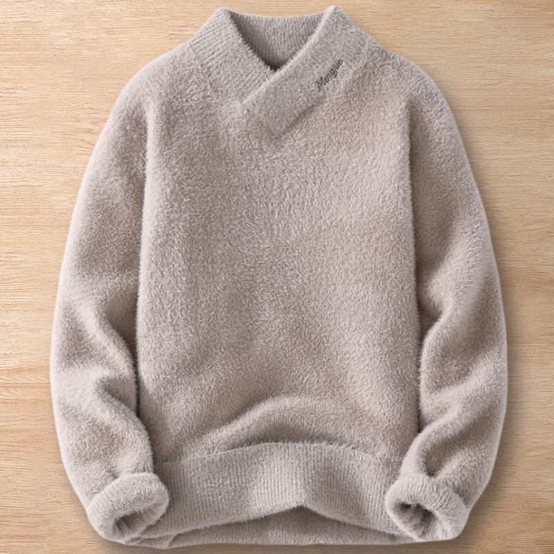 > Y224-L ベージュ 新品DCKMANY ウール混 シャギーニット セーター Vネック 暖かい 長袖 防寒 冬 メンズ カジュアル プルオーバー トップス