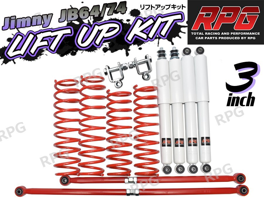 > ジムニー JB64W JB74W 3インチリフトアップキット RPGロングショック白 ラテラル赤 コイル赤 ショックブラケット