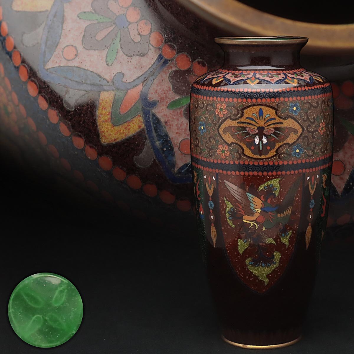 - FC132 時代【安藤七宝造】唐物写 有線七宝 古代鳳龍紋 花瓶 高24.7cm 水漏無 木箱附・安藤七宝花入 茶道具
