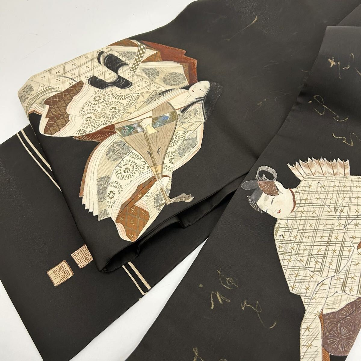 - 作家物 名古屋帯 塩瀬 姫の美しい染め 九寸 着物 正絹 W-5239